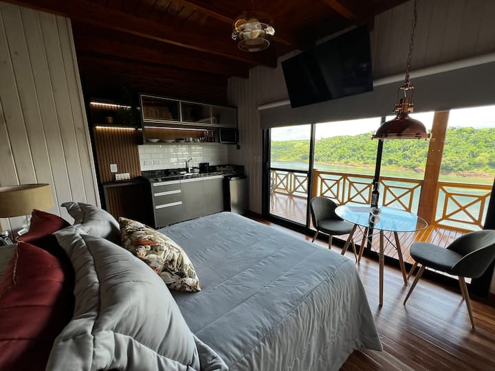 Ejani dhe zbuloni sharmin e kësaj parajse natyrore, ku harmonia midis natyrës dhe teknologjisë bashkohet për të të ofruar një përvojë unike. Presim me padurim t 'ju takojmë krahëhapur për një pushim të paharrueshëm në Suitat tona të lumit Paraná!.