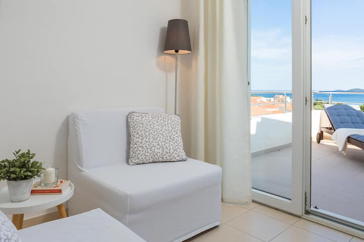 Apartamente Tihi me tarracë dhe pamje nga deti IX