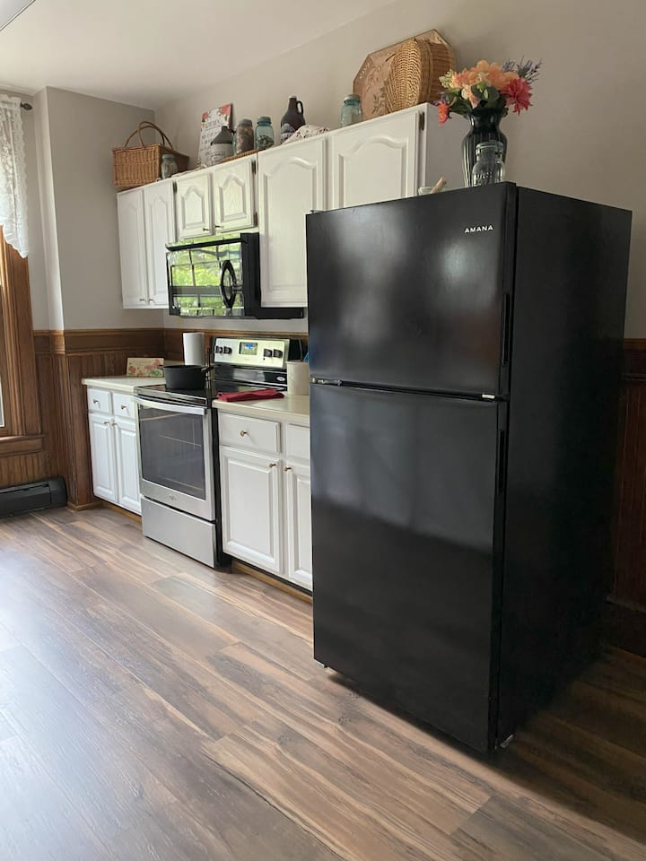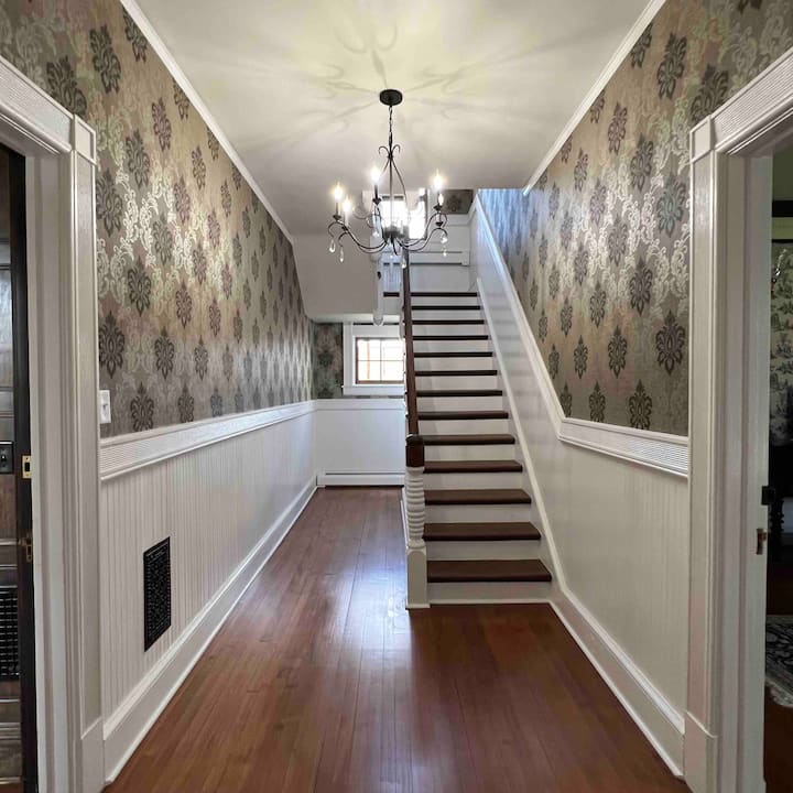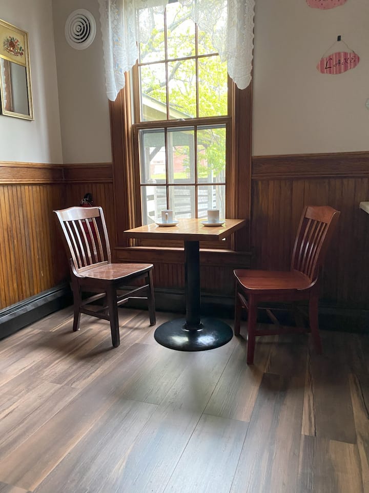Dhoma magjepsëse historike e katit të parë ofron një krevat dopio "queen" në një dhomë gjumi të rehatshme jashtë kuzhinës dhe dhomës së ngrënies, pa shkallë të nevojshme. Banja private dhe e shkëputur me dush dhe ndenjëse në këmbë ndodhet lehtësisht në katin e parë. Ka gjithashtu një dhomë të përbashkët me pluhur në afërsi për lehtësi gjatë natës.