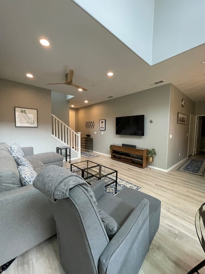 Përjeto luksin e shkretëtirës në komunitetin ekskluziv Spanish Walk të Palm Desert! Kjo shtëpi pushimi moderne mahnitëse me 4 dhoma gjumi dhe 3 banja (167 m2) ndërthur dizajnin elegant, mobiljet e nivelit të lartë dhe rehatinë e stilit të resortit vetëm disa minuta nga Acrisure Arena, fusha e golfit e klasit botëror, kazinotë dhe restorantet e shkëlqyera. Shijo një planimetri të hapur, dekor elegant, oborr privat dhe skarë Weber, e përkryer për mbrëmjet me perëndim dielli nën yje. Kënaqu me elegancën, rehatinë dhe çlodhjen në çdo detaj.