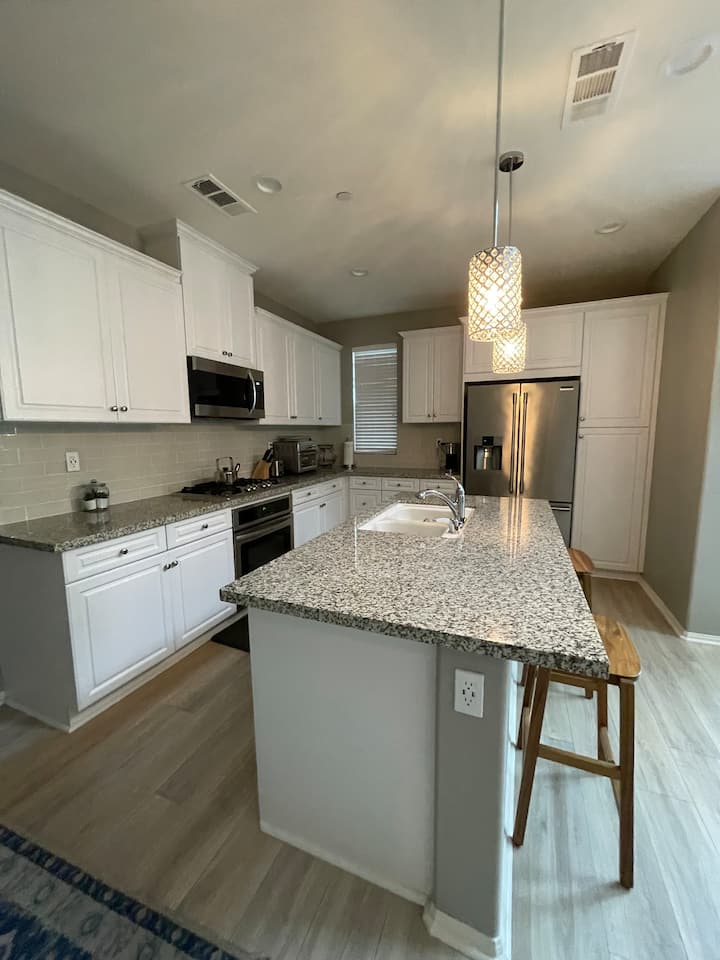 Mund të përdorësh të gjithë shtëpinë e qytetit që ka një hapësirë totale prej 1,800 metrash katrorë, si dhe oborrin e jashtëm dhe të gjitha shërbimet që ndodhen brenda komunitetit të rrethuar. Do të kesh çelësat, fobet, hapësin e derës së garazhit dhe kodet e derës kryesore për të pasur qasje në të gjithë banesën dhe komunitetin me dyer të mbyllura që ofron gjatë qëndrimit tënd.