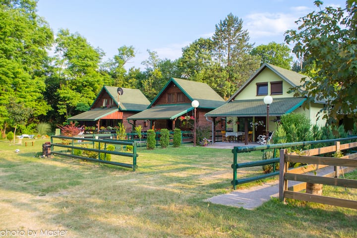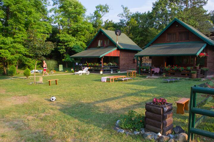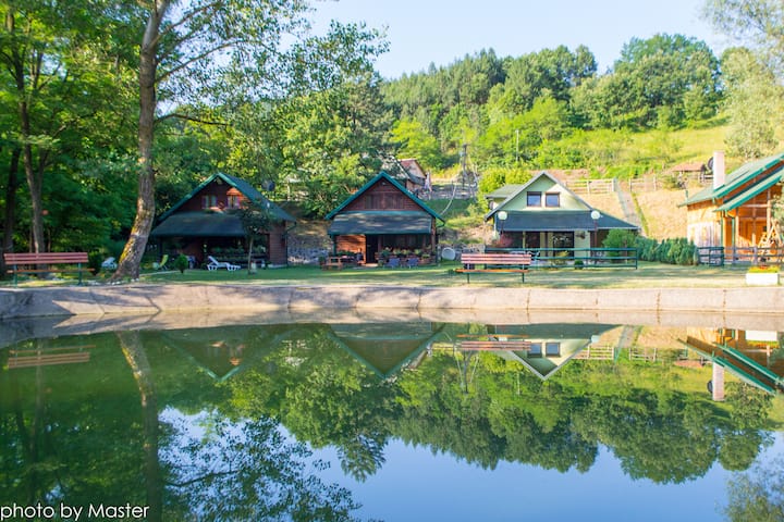 Kabinë e bukur druri pranë lumit