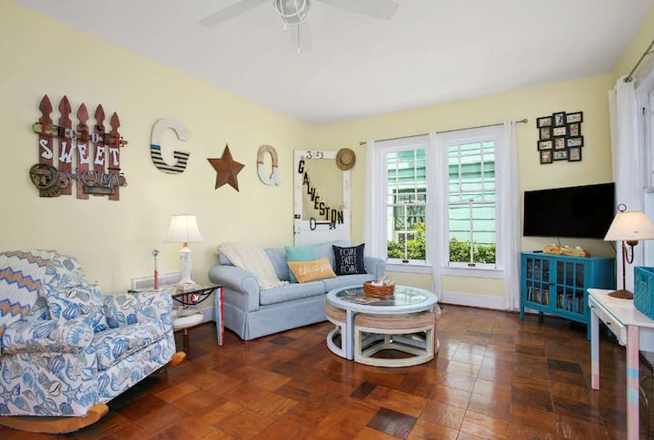 Oborri është madhësia e përkryer për t 'u shoqëruar dhe për të shijuar flladin e kripur dhe diellin e ndritshëm të ishullit Galveston. Para se të zgjohet ishulli, mund të dëgjosh oqeanin, brirët e anijeve të lundrimit dhe bilbilin e trenave. Shijo shoqërinë e miqve dhe familjes në vendet e shumta të grumbullimit që përfshijnë një gropë të përshtatshme për gaz ose gjej një vend pushimi në shumë ambiente private për të lexuar dhe për t 'u çlodhur.