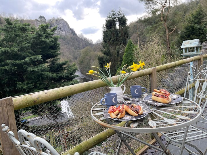 - Hyr në një tarracë private me ndenjëse, prizë elektrike (për pajisjet e karikimit), që ofron pamje të luginës dhe lumit.
