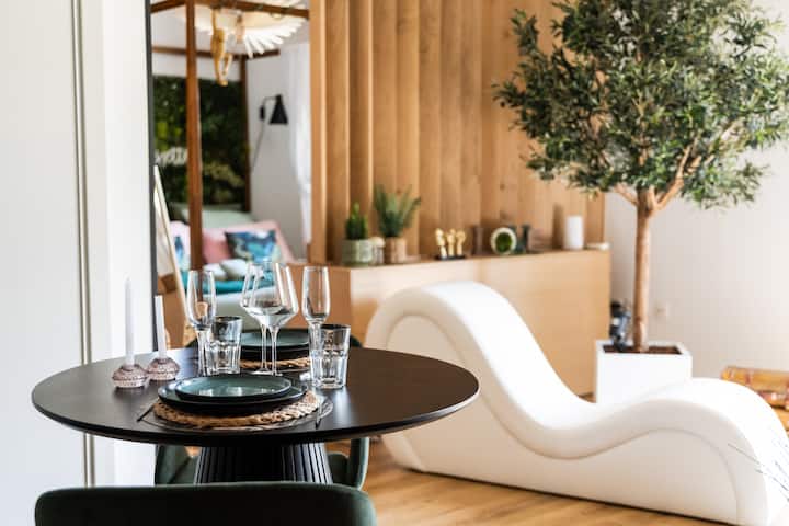 Krijues i dhomave të dashurisë të nivelit të lartë në pellgun Arcachon, unë ofroj ambiente të jashtëzakonshme të krijuara për një pushim për dy persona. Spa private, karrige tantra, krevat dopio "king-size", pasqyrë tavani... Çdo detaj është projektuar për të ofruar një pushim luksoz, intim dhe të paharrueshëm. Prenoto një përvojë romantike, të rafinuar dhe shqisore në mënyrë të pavarur.