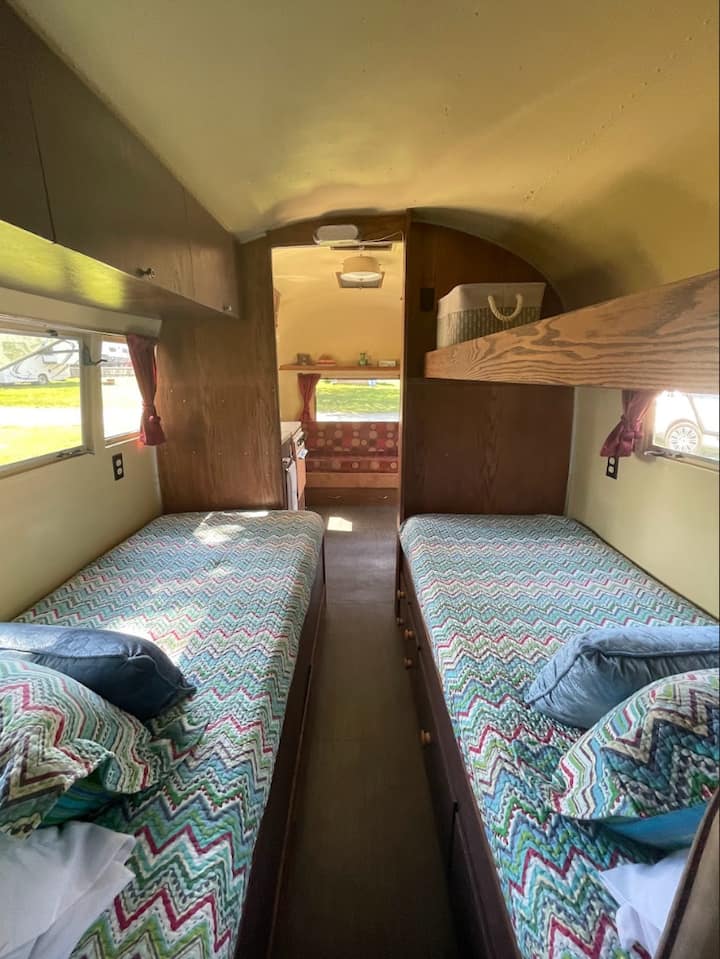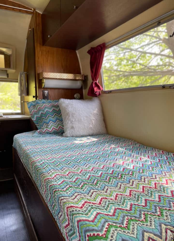 Margaux është një Airstream i vjetër i vitit 1961. Pjesë e koleksionit Vintage Vacations, ajo është një hap prapa në kohë për ditët e lavdishme të udhëtimit. Secila nga rrjedhat tona të ajrit përfshin shtroja të plota, banjë, kuzhinë, barbekju në një verandë të jashtme dhe një gropë zjarri për ato zjarre të paharrueshme.