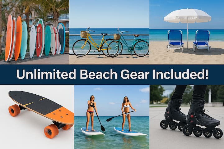 Pajisje plazhi falas, ballkon, pamje, 2 minuta deri në plazh