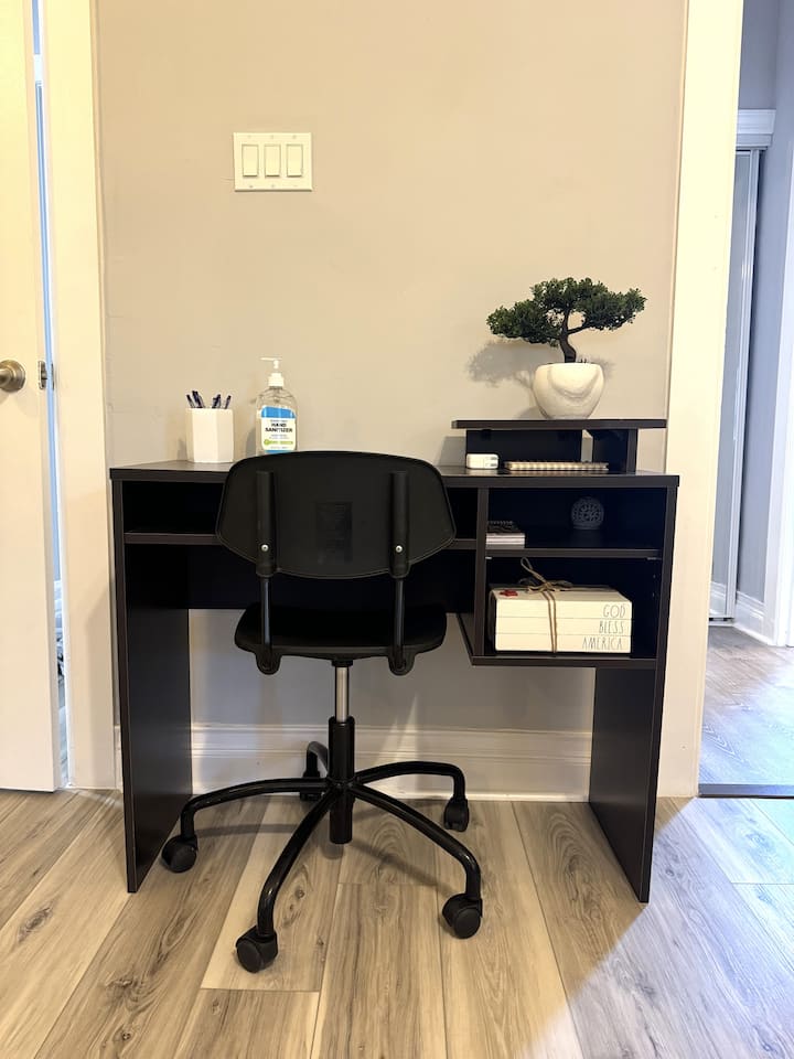 Një dhomë me wifi që është e përshtatur mirë për punë.