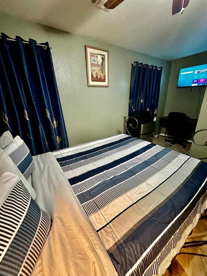 TV/Queen bd/tavolinë pune/frigorifer/mikrovalë