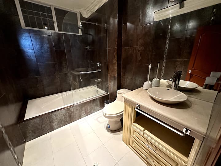 Ky ambient ka një banjë që është e lidhur me dhomën tënde.