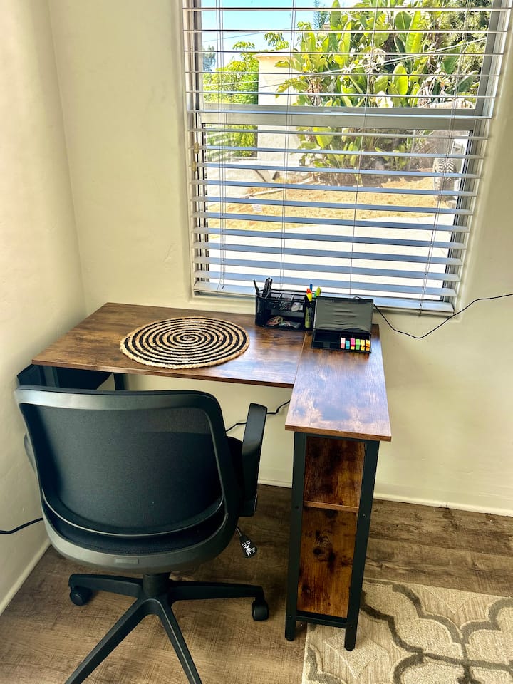 Një dhomë me wifi që është e përshtatur mirë për punë.