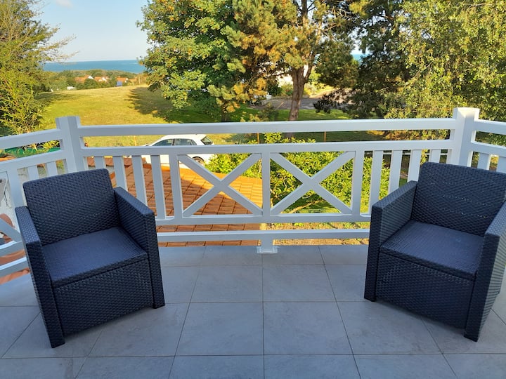 Vilë me pamje nga deti me diell.