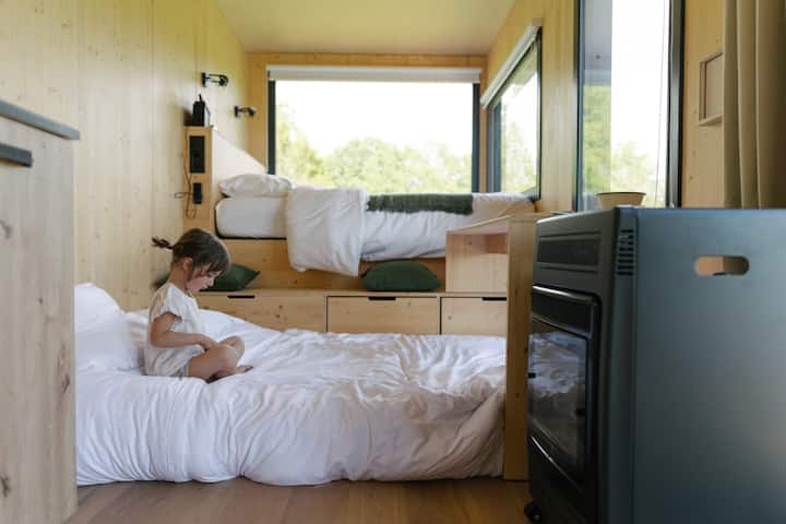Parcelë Tiny House ofron një moment shkëputjeje në zemër të natyrës. Një kabinë super komode e vendosur në vreshta, fusha ose pyll. Asnjë fqinj, asnjë wifi, vetëm një moment jashtë kohe.