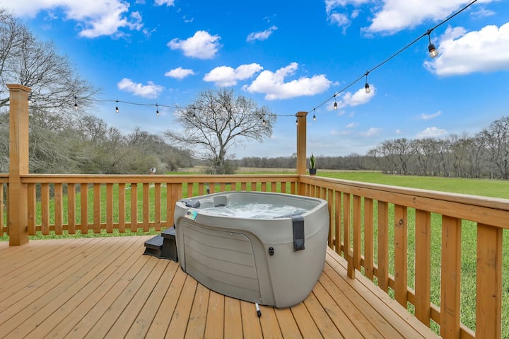 Shëtit nëpër një oaz unik, të frymëzuar nga natyra, me drita të buta dhe orendi të rehatshme që të transportojnë në një botë tjetër. Brenda, shijo një krevat dopio "King" me sfungjer memory, çarçafë të butë pambuku, gjithçka që të duhet për një pushim të shkëlqyer. Këndi i kuzhinës i pajisur me pajisje të shumta gatimi është i përkryer për kafen e mëngjesit ose vakte të plota para se të shtrihesh në verandë, të ulesh pranë vatrës së zjarrit me dru ose të dalësh jashtë për të shëtitur rreth kullotës dhe pellgut.
