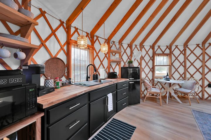 Shijo pushimet në natyrë në një pronë prej 20 hektarësh. Yurti luksoz ka një krevat dopio "King", banjë si dush dhe tualet, kondicioner, televizor inteligjent, frigorifer, kuzhinë të mirëpërcaktuar me kafetë dhe çajrat e tu të preferuar. Shijo natyrën me një verandë të madhe, vaskë me hidromasazh, gropë zjarri, skarë, dush të jashtëm dhe një pellg prej 1 hektarësh. Kantina e verës Bernhardt është më pak se 1,5 milje larg dhe festivali i Rilindjes është më pak se 10 milje larg. Vizitori ynë mund të përdorë të gjithë kullotën dhe zonën e pyjeve, si dhe të ketë qasje në pellgun e peshkimit me kajak.