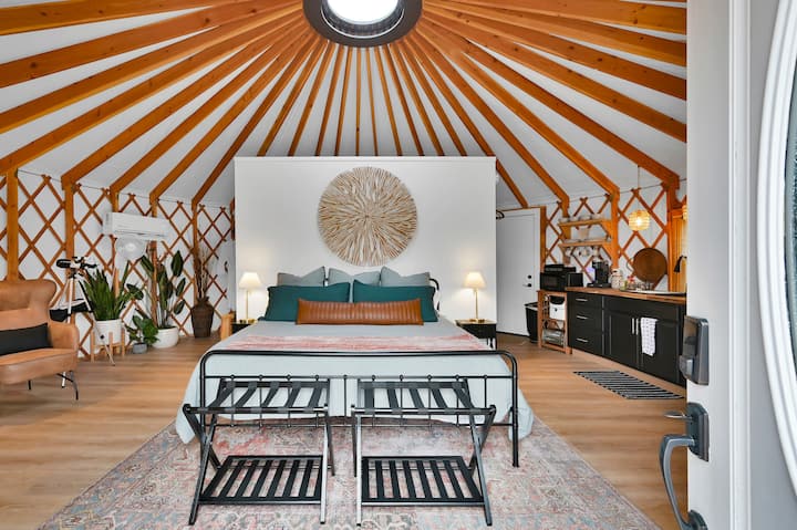 Në këtë Yurt të izoluar, do të përjetosh një botë qetësie dhe sharmi. Projektuar me elegancë dhe rehati në mendje, ky vendpushim është i përkryer për çiftet që largohen, përvjetorët, muajin e mjaltit ose aventurierët solo që kërkojnë një arratisje të jashtëzakonshme. Ndryshe nga çdo qëndrim tjetër në kabinë në Teksas, Yurt Escape është një mënyrë e paharrueshme për ta zhytur plotësisht në natyrë, duke shijuar ende detaje luksoze të nivelit të lartë.
