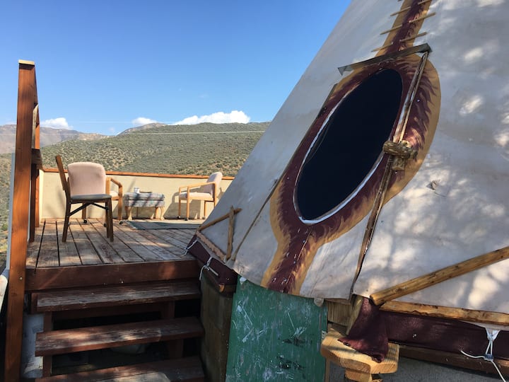 Përshëndetje, jam pritësi yt, Kris. Jam një person i popullit dhe gjenerata e pestë e Kalifornisë. Skulptor, piktor, fotograf, muzikant, ndërtues, arkitekt, projektues, e ke parasysh artin. Për 100 vjet familjet tona kanë pushuar gjithmonë në Sierra të lartë lindore. Por u vendos këtu në shkretëtirën jugore të Sierras.