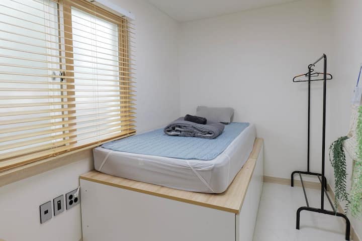 Dhoma e gjumit është e ndarë në një fjetore për 4 persona dhe një dhomë teke, dhe edhe nëse përdor një dhomë teke, duhet ta përdorësh dhomën e ndenjjes, kuzhinën dhe banjën. Dhoma e gjumit është me ajër të kondicionuar dhe ka një krevat dhe është e pajisur me një varëse dhe një prizë me tre vatra.