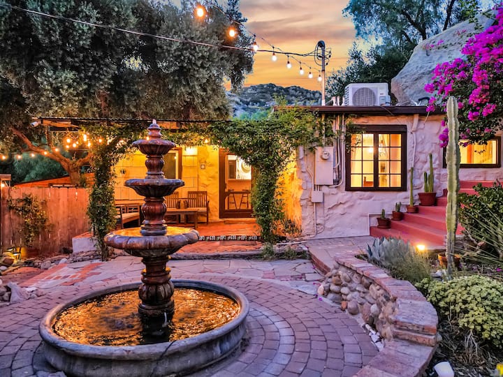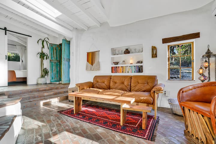 Mezi po presim të ndajmë hapësirën tonë të shenjtë me ty. Të dy jemi muzikantë dhe artistë të trajnuar në mënyrë klasike. Ne jemi të pasionuar pas natyrës, gatimit dhe komunitetit. Kemi zhvilluar Casa de la Tierra për të qenë një hapësirë shëruese për të gjithë ata që hyjnë. Jemi të bekuar që jemi rojtarët e kësaj toke dhe nderojmë ata që e kanë administruar atë prej mijëra vitesh para nesh: Chumash, Tongva, Tataviam, Gabrielino dhe popuj të tjerë vendas.