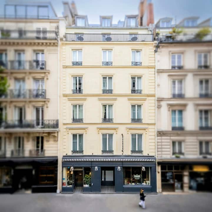 Mirë se erdhe në një qëndrim elegant në rrethin e 10-të, një nga rrethet më të bukura të Parisit. Si pjesë e koleksionit të hoteleve boutique me dizajn të avancuar Ginto, Paradis ofron shërbime të nivelit të lartë dhe frymën e art de vivre në një lagje të mbushur me dyqane të vogla dhe vendas miqësorë. Kalo përtej fasadës sonë dhe hyr në një strehë paqeje dhe qetësie. Kënaqu në një nga 38 dhomat tona dhe përgatitu për një gjumë të mirë dhe një mëngjes të shijshëm të gatuar në shtëpi.