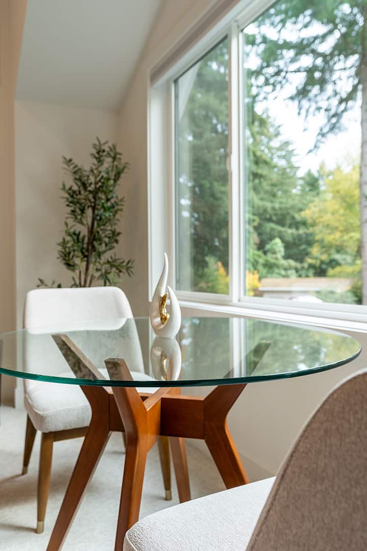 Vendndodhja e përshtatshme: E vendosur në një lagje të qetë Bellevue, shtëpia jonë arrin ekuilibrin e përsosur midis qetësisë dhe kushteve lehtësuese. Eksploro parqet, qendrat tregtare dhe alternativat e ngrënies në afërsi ose bëj një udhëtim të shkurtër me makinë në qytetin e gjallë të Siatëllit për edhe më shumë aventura. Përjeto bukurinë e Paqësorit Veriperëndimor në pragun tënd!