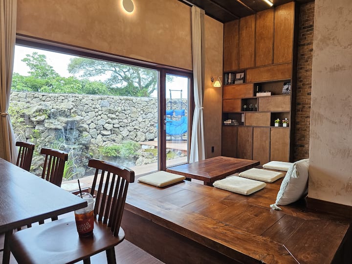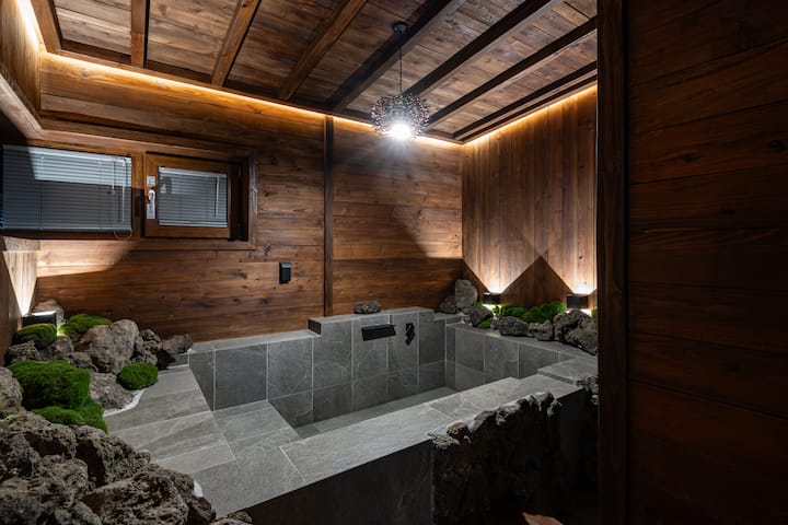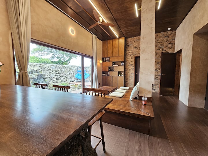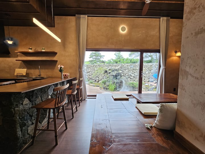 Ladena Jeju_40 pyeong private house hot water jacuzzi (2 dhoma të stilit perëndimor + dhomë ndenjjeje dhe kuzhinë + 2 banja), xhakuzi me ujë të ngrohtë falas, pension i ri privat