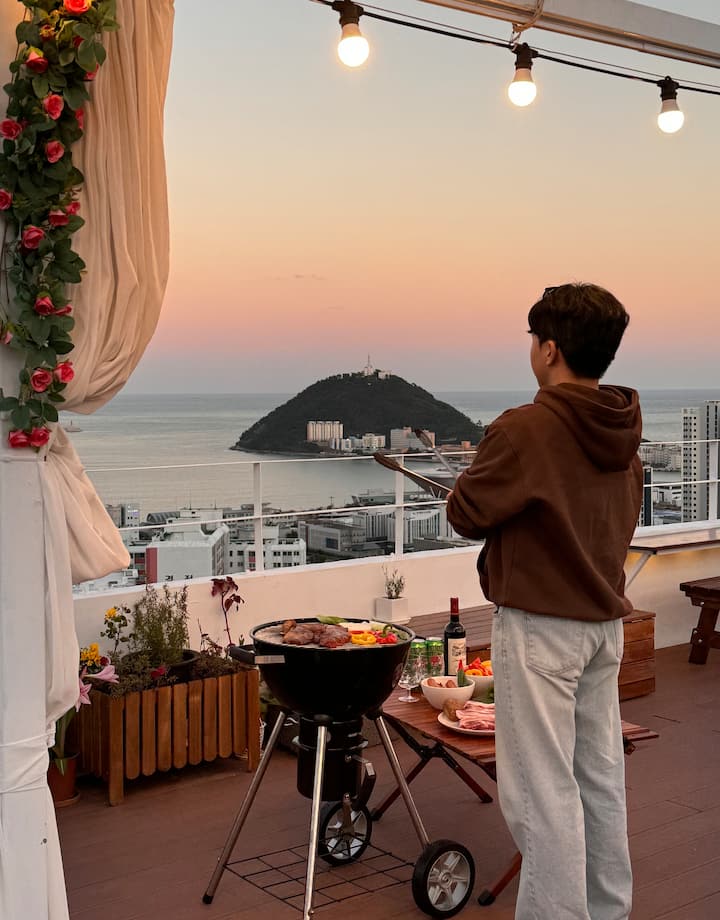 Staydullock • Ekskluzive • Stacioni i Busanit • Festë me pamje nga oqeani • Barbecue në çati • Shtretër me temperaturë • Parkim falas