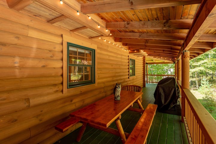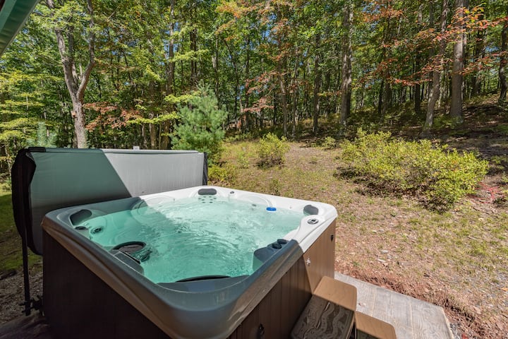 Kabinë fshati Deep Creek me gropë zjarri dhe vaskë me hidromasazh