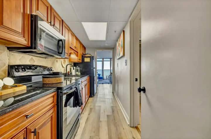 Kuzhina e pajisur plotësisht është e përkryer për përgatitjen e ushqimeve familjare ose një piknik për të shijuar në plazh. Në ditët që vendos të darkosh, të mblidhesh rreth tryezës së ngrënies për tre persona me të dashurit e tu. Nëse gatimi nuk është në listën e aktiviteteve të pushimeve, mos u shqetëso, pasi kjo zonë e Myrtle Beach ka disa nga restorantet më të mira shumë pranë. Myrtle Beach ka mbi 1,900 restorante për të zgjedhur. Nga disa prej prodhimeve të detit më të freskëta që do të shijosh ndonjëherë, në restorantet e të gjitha shijeve dhe pikave të çmimeve. Më beso - sythat e shijes nuk do të mërziten kurrë!