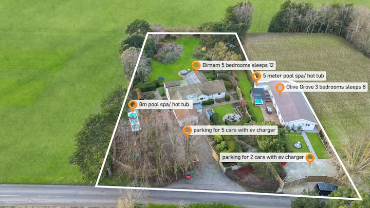 Arratisja e përsosur luksoze në fshatrat e Kentit, që përfshin dy prona fqinje të emëruara në mënyrë të shkëlqyer të kombinuara në një. Ideale për mbledhje të mëdha familjare dhe miqsh, duke fjetur 20 vizitorë në 8 dhoma gjumi dhe 6 banja. Shijo terrenet e gjera të manikyruara, dy vaska luksoze me hidromasazh, llixhat e pishinës, palestrën dhe ambientet e sigurta të lojërave për fëmijë, duke siguruar kënaqësi të bollshme në vend.