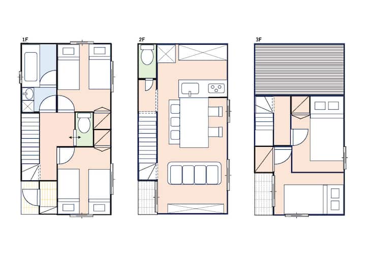 Dhomë ndenjjeje dhe ngrënieje + 4 dhoma 4LDK 1 shtëpi me qira (deri në 8 persona)