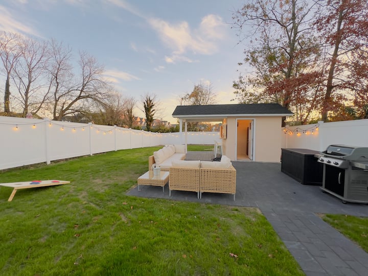 • Hyr në oborrin tënd privat, plotësisht të rrethuar, një pushim ideal për pasdite argëtuese. Mblidhu rreth gropës së zjarrit (druri nuk ofrohet) për të treguar histori ose shijo ngrënien alfresko në mobiliet elegante të jashtme ndërsa pjek një festë familjare.