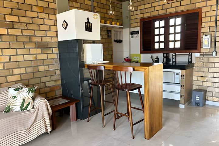 Dhoma e ndenjjes ka një televizor me ekran të sheshtë me qasje në shërbimet e transmetimit (Netflix, Globoplay dhe Prime Video). Ofrojmë gjithashtu disa libra për relaksim dhe lodra për fëmijët. Kuzhina është e pajisur me sobë, mini-frigorifer, pastrues uji dhe pajisje të tjera të reja. Ka gjithashtu një përzgjedhje erëzash dhe disa drithëra në dispozicion. Dy tarracat, në pjesën e përparme dhe të pasme të shtëpisë, garantojnë momente të shkëlqyera për t'u çlodhur në një hamak, në një shezlong ose duke shijuar mëngjesin jashtë.