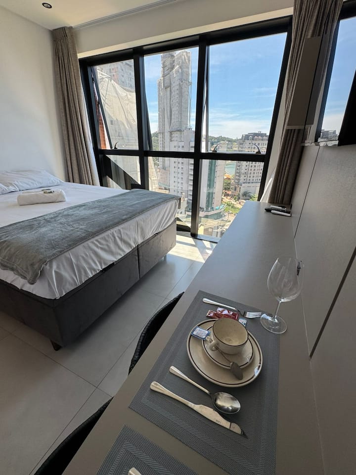 Shijo studion tonë moderne me pamje nga deti në qendër të Itapema/SC.