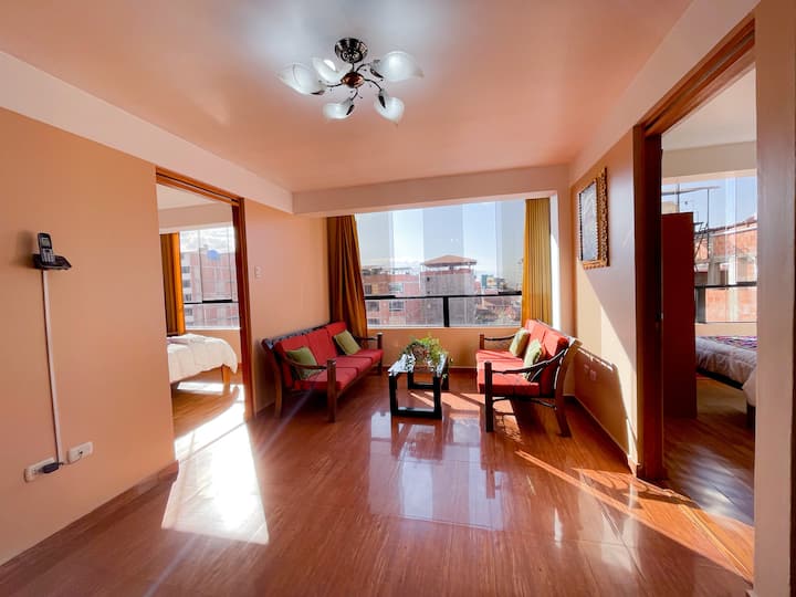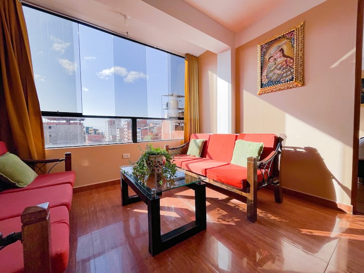 - Dhoma e ngrënies në katin e sipërm ka një pamje të pabesueshme të qytetit , gjithashtu na lejon të vëzhgojmë statujën e famshme të Inca Pachacuteq e cila është një nga monumentet kryesore të qytetit.
