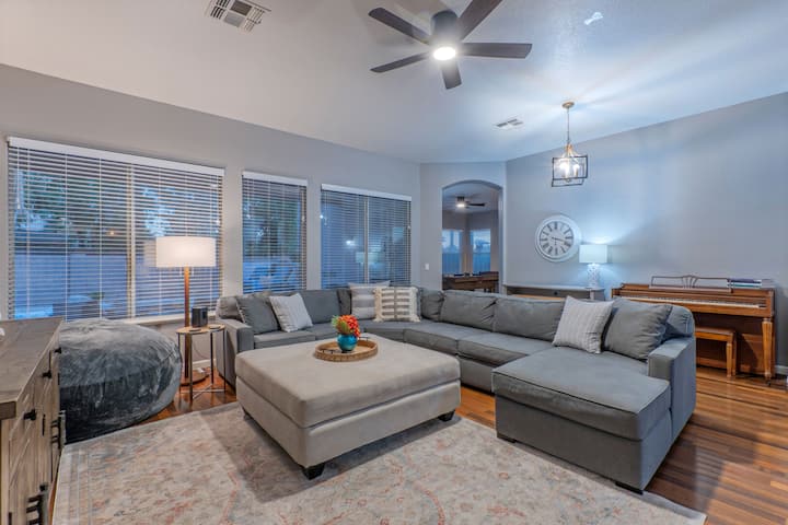 Mahnitëse, një histori, shtëpi Chandler, PORT I FSHEHUR, me qasje në liqen, një dhomë lojërash me pishinë dhe tavolina të tjera lojërash, një kuzhinë e pajisur plotësisht dhe 4 dhoma gjumi dhe 2 banja mund të jetë vendi i ri i lumtur i familjes TËNDE. Parajsa e jashtme ka një pishinë private me rreth ngrohje opsionale dhe basketbolli, ambiente me hije dhe me diell për ngrënie dhe çlodhje, gropë zjarri me gaz dhe një skarë të integruar me gaz. Tarifa e ngrohjes së pishinës është 75,00 $ për natë për të ngrohur pishinën në 80º F.