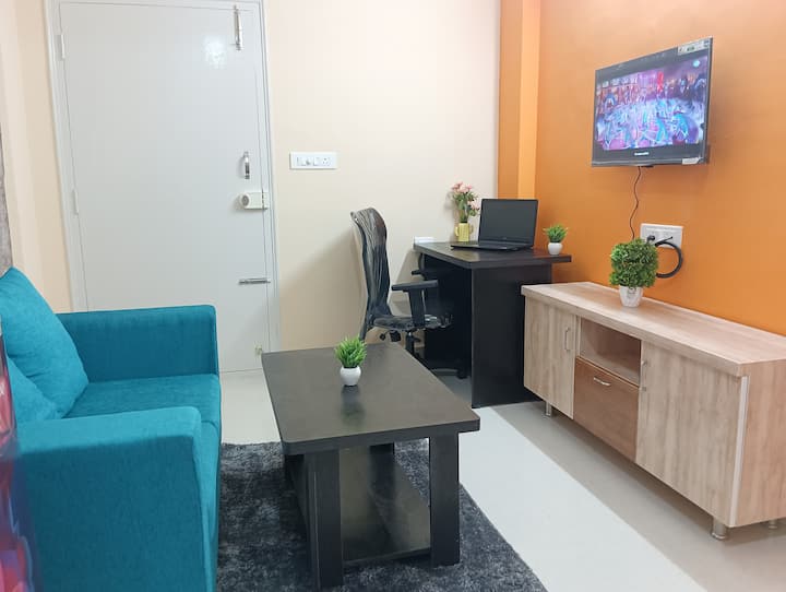 Mirë se vjen në apartamentin tonë të qetë dhe të vendosur në qendër me 1 dhomë gjumi në një banesë. E përkryer për familjet dhe profesionistët që punojnë, hapësira jonë ofron një ambient të rehatshëm dhe kuzhina e shërbimeve bazë vjen e pajisur me një sobë me gaz, enë bazë, frigorifer e të tjera. Shijo argëtimin me një televizor dhe lidhje kabllore 32", së bashku me qasjen në Wi-Fi. Përjeto rehatinë dhe komoditetin gjatë qëndrimit!