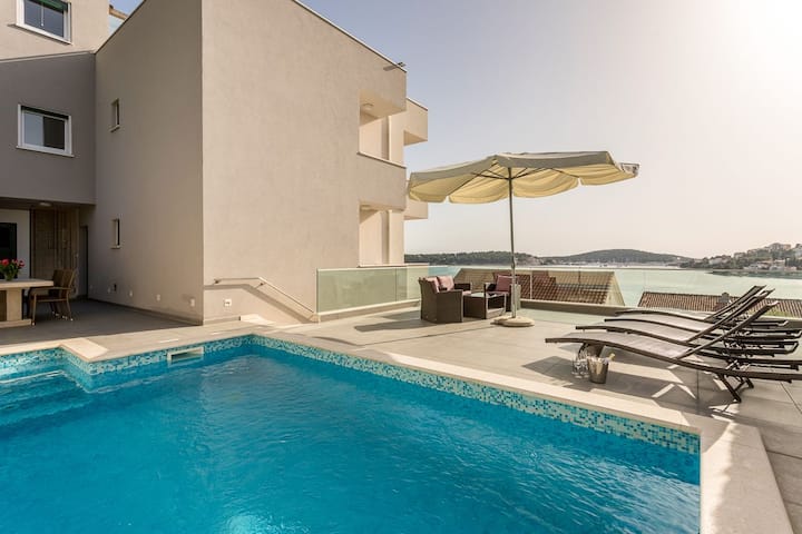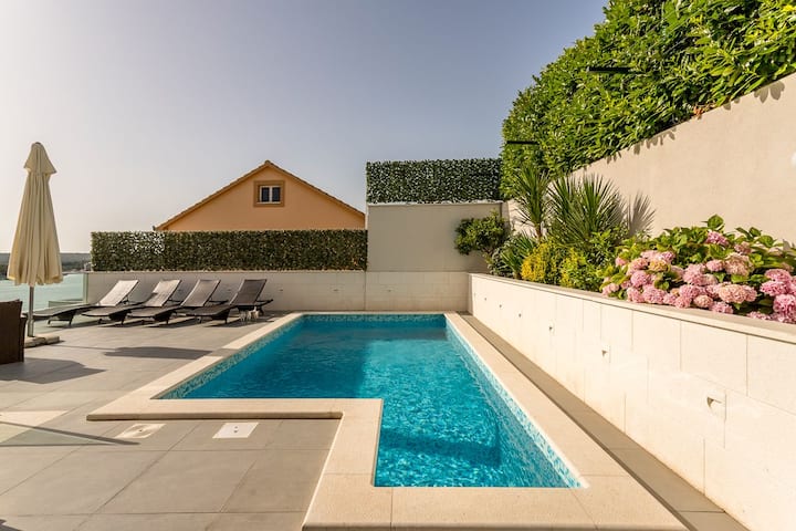 E vendosur në kodër drejtpërdrejt përballë fshatit popullor të Rogoznicës, kjo vilë e bukur ofron pamje spektakolare të detit dhe qytetit të kundërt. Rogoznica është pika ndarëse midis Detit Adriatik të Veriut dhe Jugut dhe e njohur për aventurat fantastike të sporteve ujore. Ka një bollëk restorantesh, kafenesh dhe baresh të shkëlqyera përreth fshatit, sigurohu që të provosh kapjen e ditës, pasi zona është e njohur për delikatesat e saj të peshkut. Ndoshta gjëja më e mirë për të cilën Rogoznica është i famshëm është liqeni ‘Dragons Eye’, burimi i disa miteve dhe legjendave. Liqeni rrethor ruhet nga shkëmbinj nga katër deri në njëzet e pesë metra të lartë dhe është një vend i shkëlqyer për çdo zhytës aventurier në shkëmb. Sulfidi i hidrogjenit në ujë është krejtësisht i sigurt për të notuar dhe ndonjëherë bën që uji të flluskojë! Sigurohu që të lexosh gjithçka rreth miteve dhe legjendave nga tabelat e informacionit ndërsa ecën nëpër liqen.