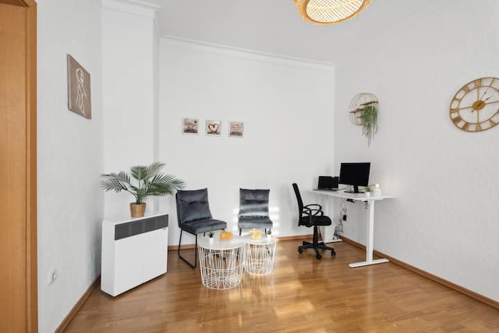 Ky apartament i bukur është pikënisja ideale për një vizitë të paharrueshme në Gelsenkirchen. Ambienti i ndenjjes është vendi ku do të kalosh momentet më të paharrueshme me të dashurit e tu. Përqafohu në divan dhe shiko një film, puno në cepin e zyrës, diskuto aventurat e tua ose bëj kafshime të shijshme në kuzhinën e plotë.