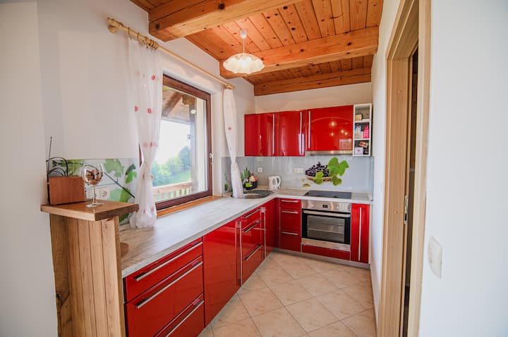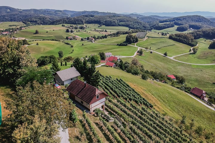 Shtëpi pushimi me diell me ballkon dhe pamje nga vreshti