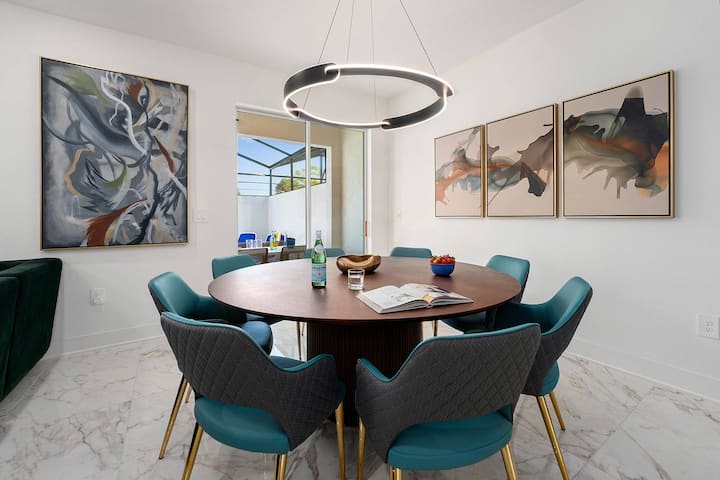 Bëj gati kostumet e banjës dhe bëj një shpërthim së bashku në oazin e pishinës private. Shtrihu me një libër në një pishinë me karrige ose noton ndërsa fëmijët bëjnë një spërkatje ose shijojnë një konkurrencë miqësore rreth tavolinës së foosballit. Pastaj mblidhi të gjithë së bashku për një vakt në ajër të hapur rreth tavolinës tënde me hije lanai. Kjo është Florida që jeton në më të mirën e saj!