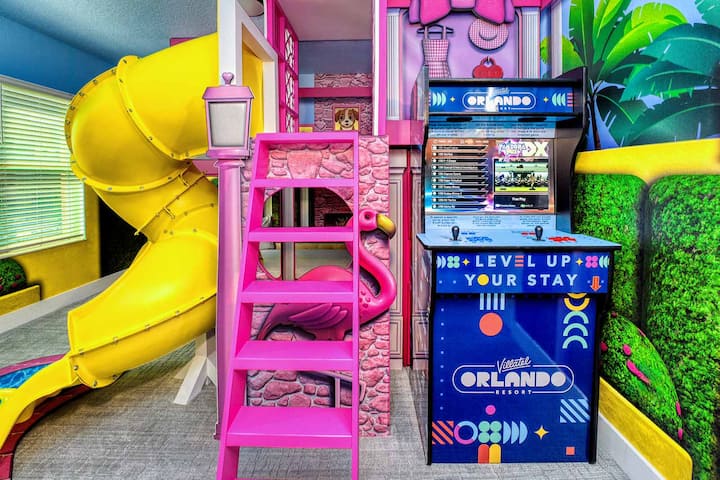 E vetmja gjë më e mirë se dekori dhe shërbimet fab në këtë vilë me 5 dhoma gjumi...është vendndodhja e saj joreale. I ndodhur në Orlando 's International Drive, do të zgjedhësh të hash, dyqane dhe argëtim të lartë, vetëm pak minuta nga veprimi i Universal Orlando. Por mund të mos duash as të largohesh pasi të kesh një ngarkesë të shërbimeve të brendshme: 5 dhoma gjumi luksoze, duke përfshirë një dhomë për fëmijë me tematikë, hapësirë të madhe ndenjjeje, pishinë private e të tjera. Vetëm mbushe me njerëzit e tu të preferuar dhe lëri kohët e mira të rrokullisen!