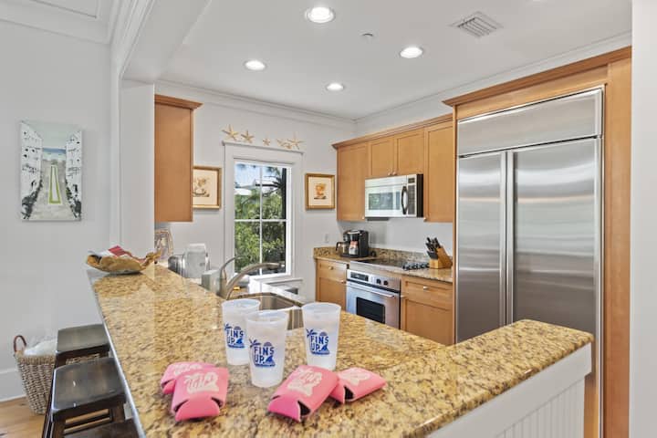 DETAJET: Fins Up është një apartament me 2 dhoma gjumi dhe 2 banja në rrethin e Gjirit të WaterColor me mobilje të reja, vepra arti dhe një televizor të ri Smart me një sistem zëri bluetooth SONOS. Kjo njësi në qoshe ka një verandë të mbuluar dhe një ballkon me pamje të bukura pyjore dhe është në anën jugore të 30A, vetëm disa hapa nga klubi i plazhit, dyqanet dhe hyrja në plazh.