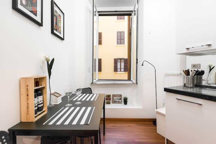 Apartamenti ndodhet në rrethin e Romës të quajtur Prati pranë hyrjes së Muzeve të Vatikanit dhe disa hapa nga Bazilika e Shën Pjetrit. Prati është një lagje elegante me dyqane, bare dhe restorante të shumta, e shërbyer mirë nga transporti publik dhe metroja.
