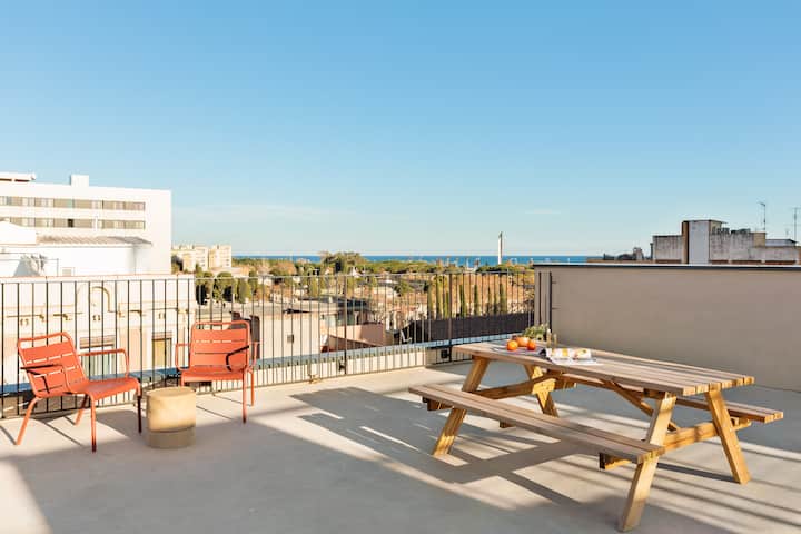 Poblenou Beachside: Pishinë, palestër dhe çati me pamje nga deti