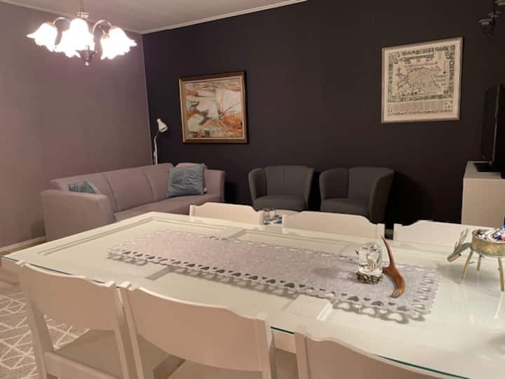 Pushime në një shtëpi të rehatshme dhe të bollshme për një familje, shijo qetësinë dhe ajrin e pastër të fshatit dhe çlodhu në saunën me dru para gjumit të qetë.