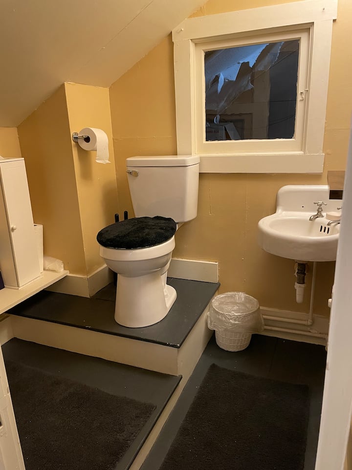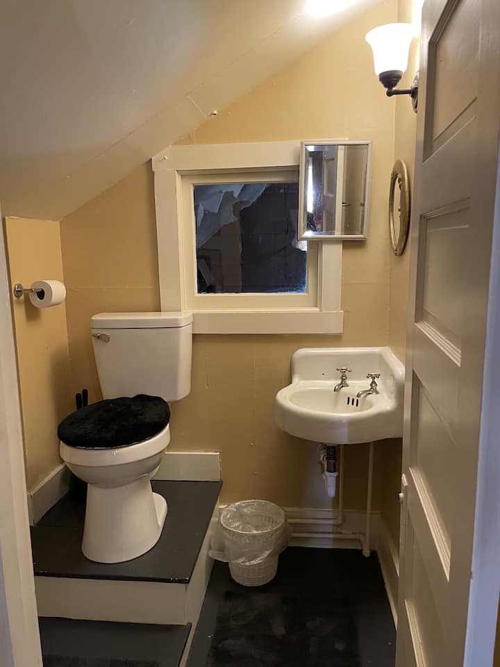 This place has a half bathroom that’s connected to your room.