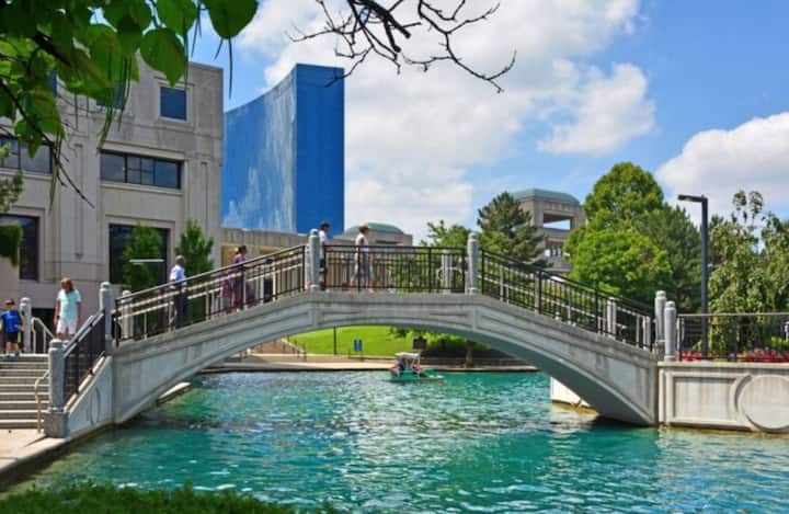 Vendndodhja e përkryer për çdo gjë në qendër të Indy. Parkim i lehtë në rrugë ose në garazh... parkim falas në rrugë të dielave! Vendi ishte më i mirë se fotografitë (të cilat ishin të këndshme!) Vendndodhje e qetë dhe krevat i rehatshëm. Gerry ishte shumë miqësor dhe i shoqërueshëm. Të gjitha detajet u kujdesën duke përfshirë ushqime të lehta, ushqime, pije, kafe, lojëra, ëmbëlsira, shampo/larje...kaq shumë gjëra që e bënë qëndrimin të përshtatshëm. Do të qëndrojmë këtu sa herë që të jemi në qendër të qytetit! Faleminderit që e ndave hapësirën tënde të bukur.