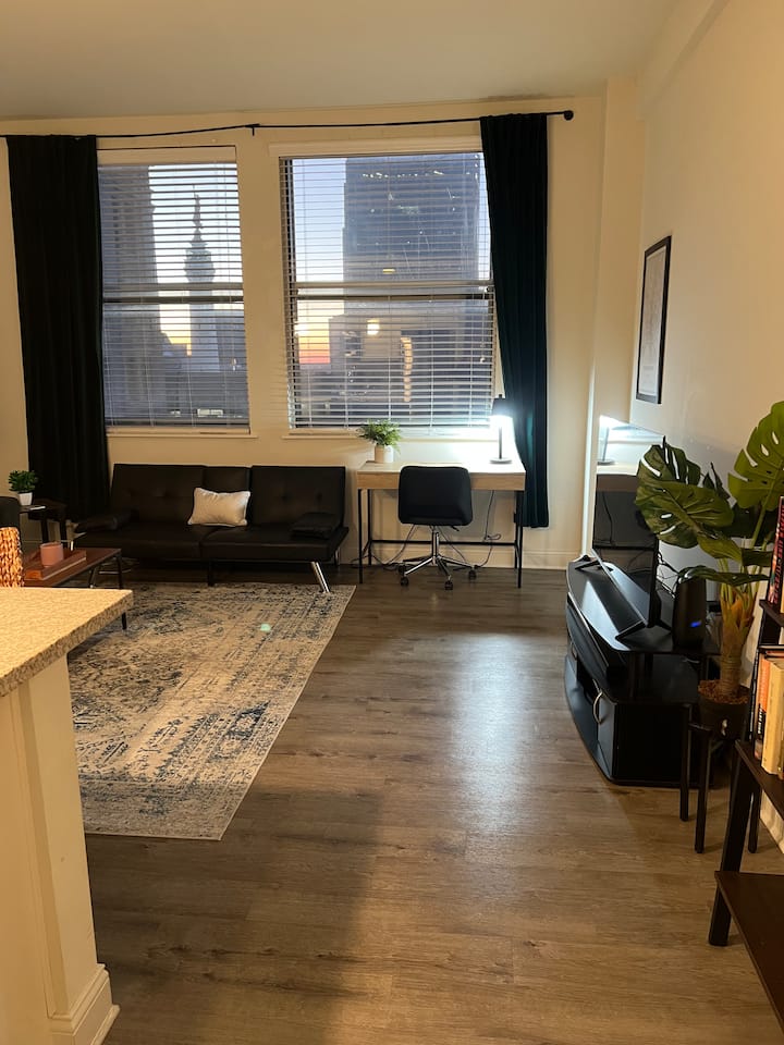 Gerry është pritësi më I mirë në qendër të Indianapolis!!! Nga dita që prenotuam (rreth 7 muaj më parë), ai ishte jashtëzakonisht i përgjegjshëm dhe i shpejtë për t 'iu përgjigjur çdo pyetjeje që i bënim. Ai na kontaktoi rreth 2 javë para qëndrimit tonë për të na kërkuar t 'i jepnim një listë ushqimesh dhe ai do të shihte nëse mund ta bënte atë - DHE ai shkoi përtej kësaj detyre. Apartamenti kishte disa sende personale, por ai bëri një punë të shkëlqyer për të na dhënë hapësirë të mjaftueshme për të GJITHA gjërat tona (duke përfshirë dy grupe klubesh golfi). Kjo ishte përvoja jonë e parë në INDY 500 dhe nëse kthehemi ndonjëherë, do të kryqëzojmë gishtat që ambienti i Gerry është i disponueshëm. Duke qenë në mes të qendrës së qytetit, vështirë se mund të dëgjonim një përgjim nga trafiku natën dhe të bënim një gjumë të këndshëm natën, krahasuar me miqtë tanë që qëndronin në hotelet lokale. DHE na pëlqen të jemi brenda distancës së ecjes së ÇDO GJËJE. Vetëm një përvojë e shkëlqyer gjithandej.