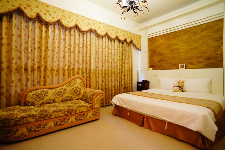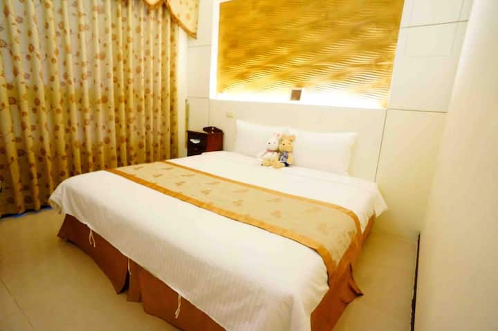 Dyshek i madhësisë king (banjë private) 5 minuta më këmbë nga Stacioni Hekurudhor Hualien Mae, transport i përshtatshëm, i ngrohtë dhe i rehatshëm